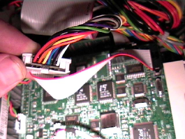 Esta Medio Chapuza (en la foto no se aprecia pero los conectores son diferentes) . Es debida a que el disco duro es muy gordo, y el modem estaba pensado para usar un conector de cable de cinta (los cables salen por un lateral) y no el que trae el intel, cables sueltos que salen por arriba, con este alargador, lo solucionan.